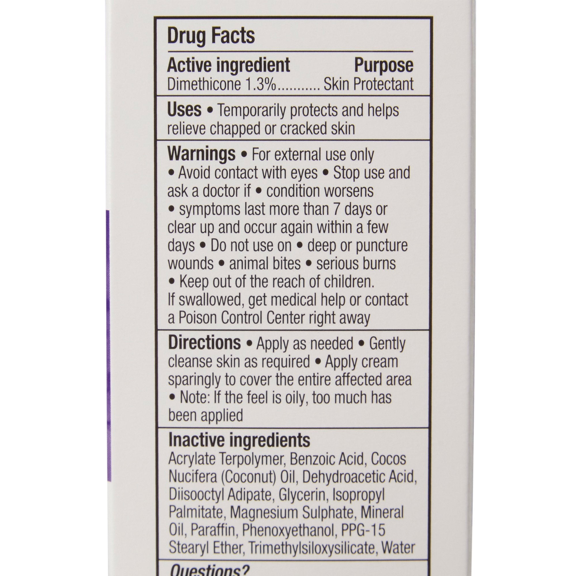 • The moisturizing barrier cream contains dimethicone to keep skin protected