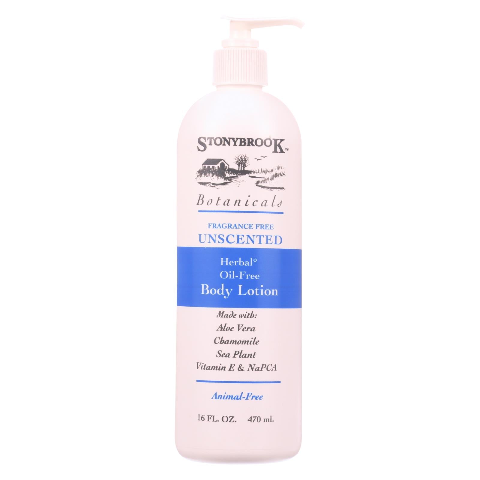 Stonybrook botanicals unscented herbal body lotion offers a non-oily yet effective cruelty-free moisturizer that doesn't contain pore-clogging elements such as mineral oil and petroleum. The lightweight formula in this 16 fl. Oz. Bottle relies on a combination of potent ingredients such as chamomile, sea plant extract and vitamin e to relieve dry skin, and it's free color and fragrance for worry-free use by those with allergies or sensitivities.