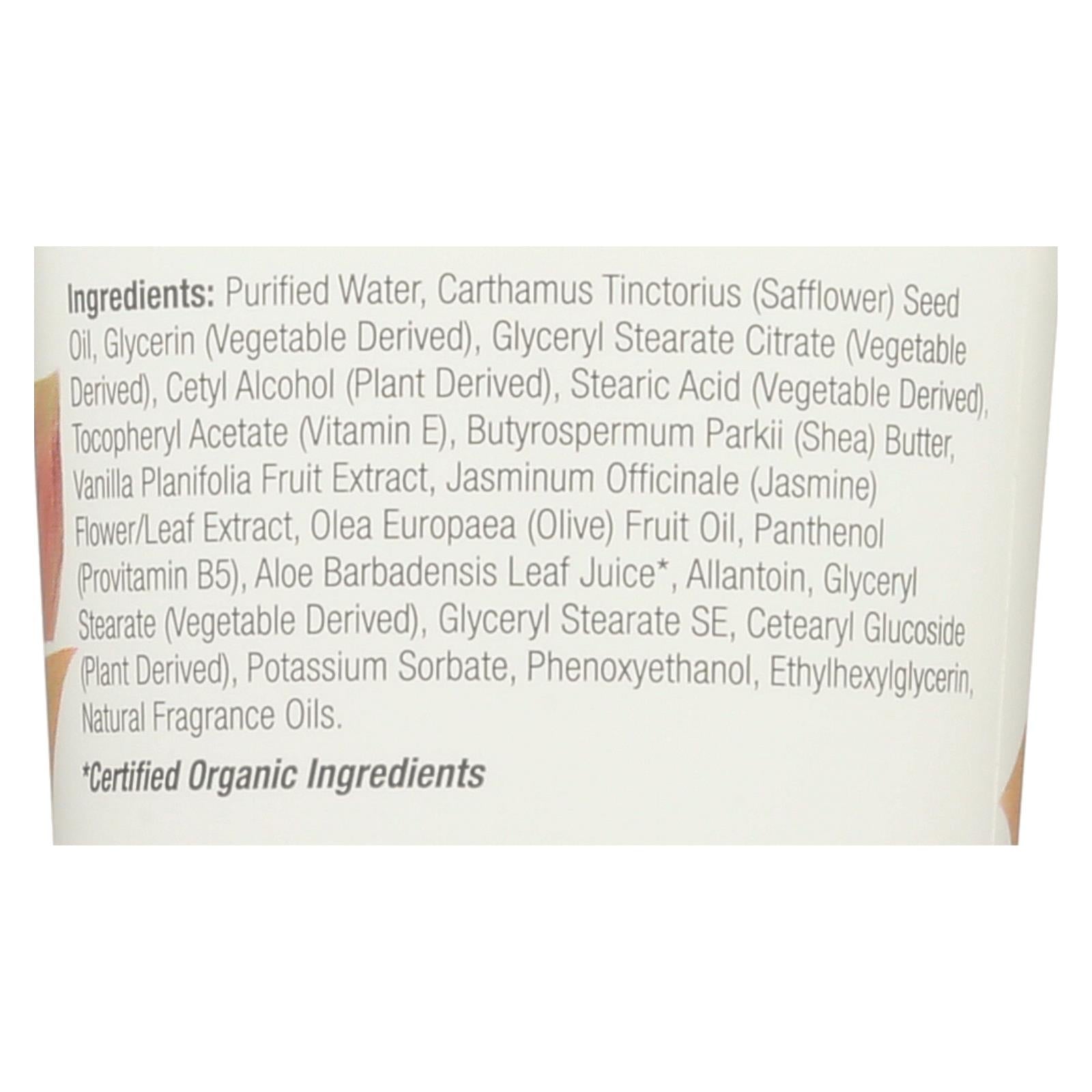 ingredients : purified water;carthamus tinctorius;safflower;seed oil;glycerin;vegetable derived;glyceryl stearate citrate;cetyl alcohol;plant derived;stearic acid;tocopheryl acetate;vitamin e;butyrospermum parkii;shea;butter;vanilla planifolia fruit extract;jasminum officinale;jasmine;flower/leaf extract;olea europaea;olive;fruit oil;panthenol;provitamin b5;aloe barbadensis leaf juice;allantoin;glyceryl stearate;glyceryl stearate se;cetearyl glucoside;potassium sorbate;phenoxyethanol;ethylhexylglycerin;natura