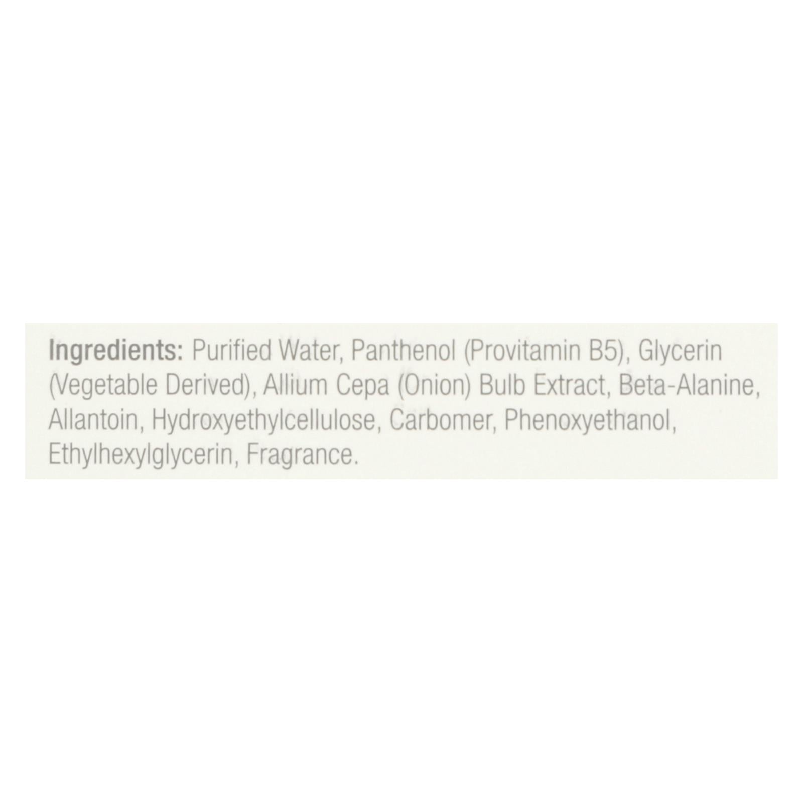 ingredients : purified water;panthenol;provitamin b5;glycerin;vegetable derived;allium cepa;onion;bulb extract;beta-alanine;allantoin;hydroxyethylcellulose;carbomer;phenoxyethanol;ethylhexylglycerin;fragrance