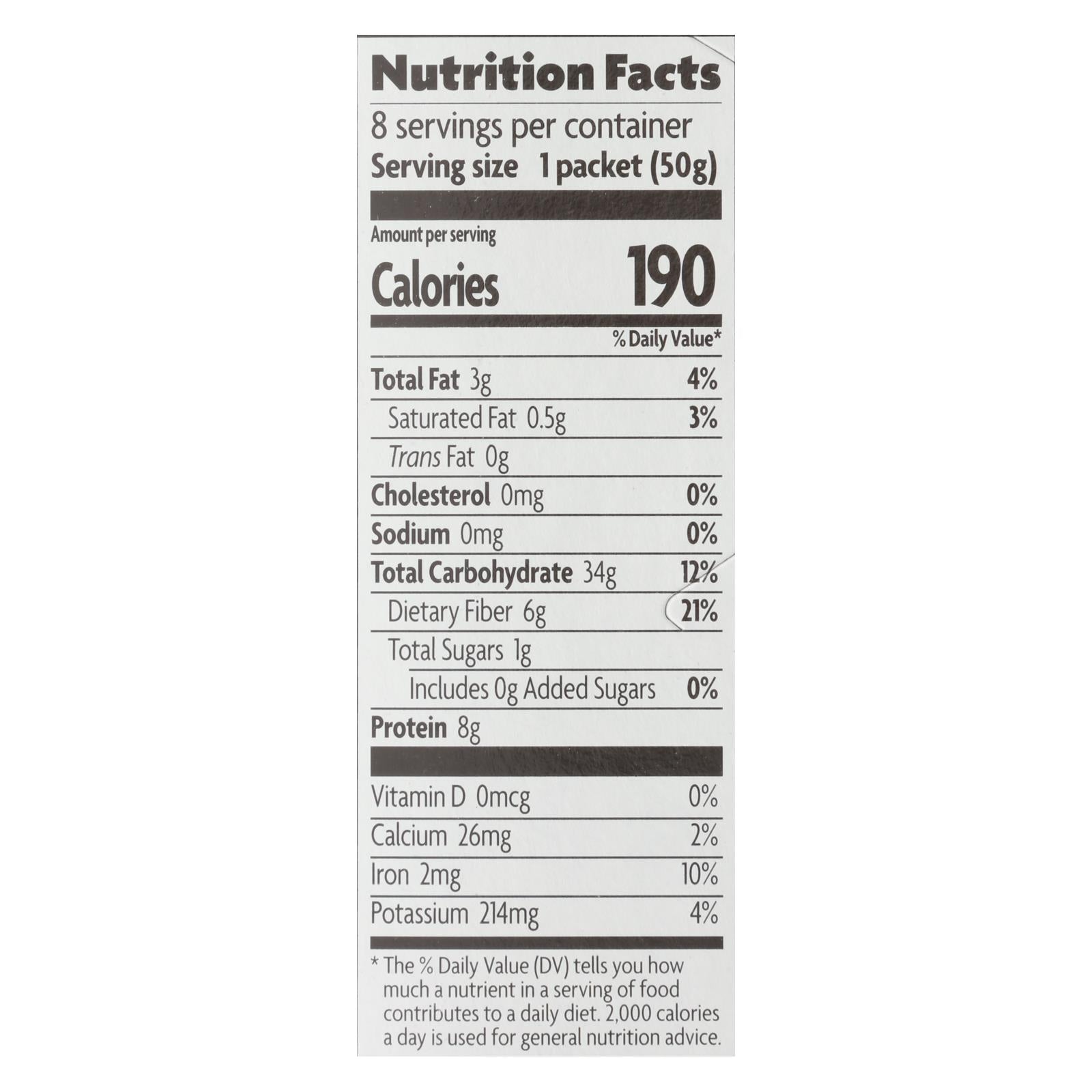 Nature's path hot oatmeal, original flavor, is made with the best organic ingredients and tastes great. Ready in minutes, this hot cereal blend is perfect for breakfast. It provides 50 g. Of whole grains, 6 g. Of fiber and 8 g. Of protein in every serving, and no salt was added. Our hot oatmeal is made with kosher ingredients that are gmo-free and vegan. See nutrition facts panel for allergens.