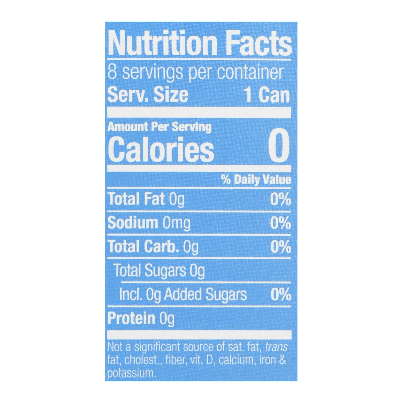 Sparkling seltzer water. 0 calories per can. Zero: calories; sugar; sweeteners; sodium; caffeine. Naturally calorie-free. The simple stuff is the best stuff. Our water is locally-sourced from a protected glacial aquifer. Drinkadirondack.com.