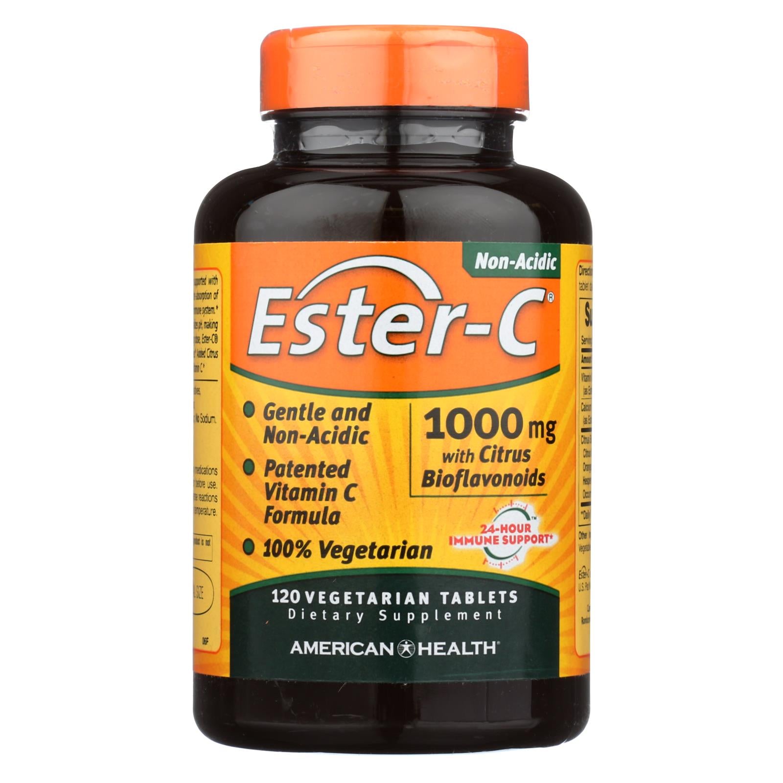 American health ester-c 1000 mg. With citrus bioflavonoids is our breakthrough patented vitamin c formula supported with naturally occurring metabolites. Metabolites help enhance the absorption of vitamin c by your white blood cells and we use a unique, chemical-free manufacturing process that neutralizes ph which makes it non-acidic. Our gluten-free dietary supplement has a formula with no gmos and free of artificial flavors, colors and preservatives. There is no soy, sodium, lactose, milk and milk products and no sugar. Included is one bottle of 120 american health ester-c 1000 mg. With citrus bioflavonoids vegetarian tablets. See nutrition facts panel for allergens. Good health does not need to be complicated. We understand the complex needs of a healthy lifestyle and develop supplements which work synergistically with your natural physiology to help promote proper balance and wellness.