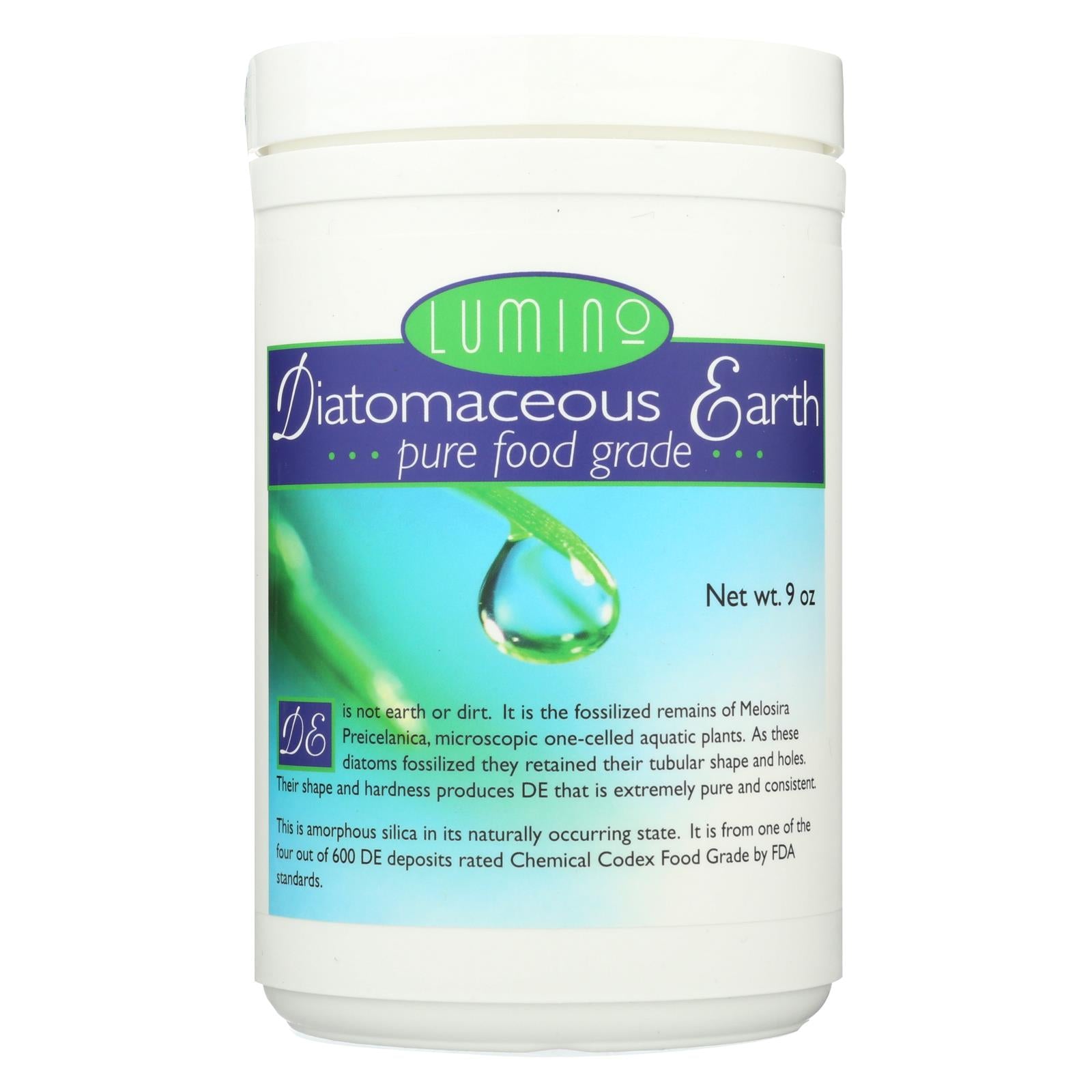 Lumino pure food grade diatomaceous earth is 100% pure for maximum benefits. It is made from fossilized diatoms and helps improve animal health and growth. Use the powder dry or mix one teaspoon with two cups of liquid. This 9 oz. Bottle of pure fresh water diatomaceous earth works are an insecticide or a pesticide, and it is epa registered.