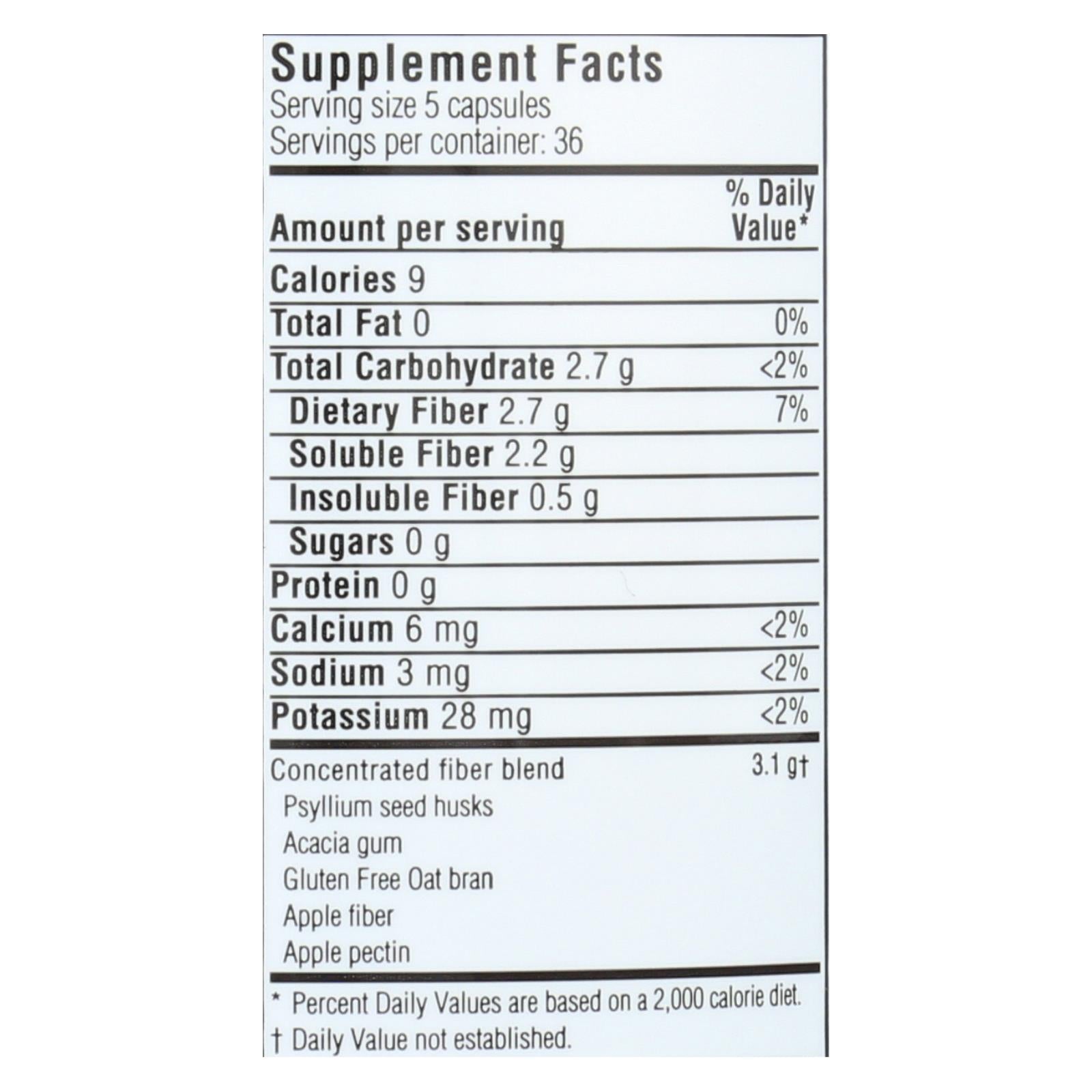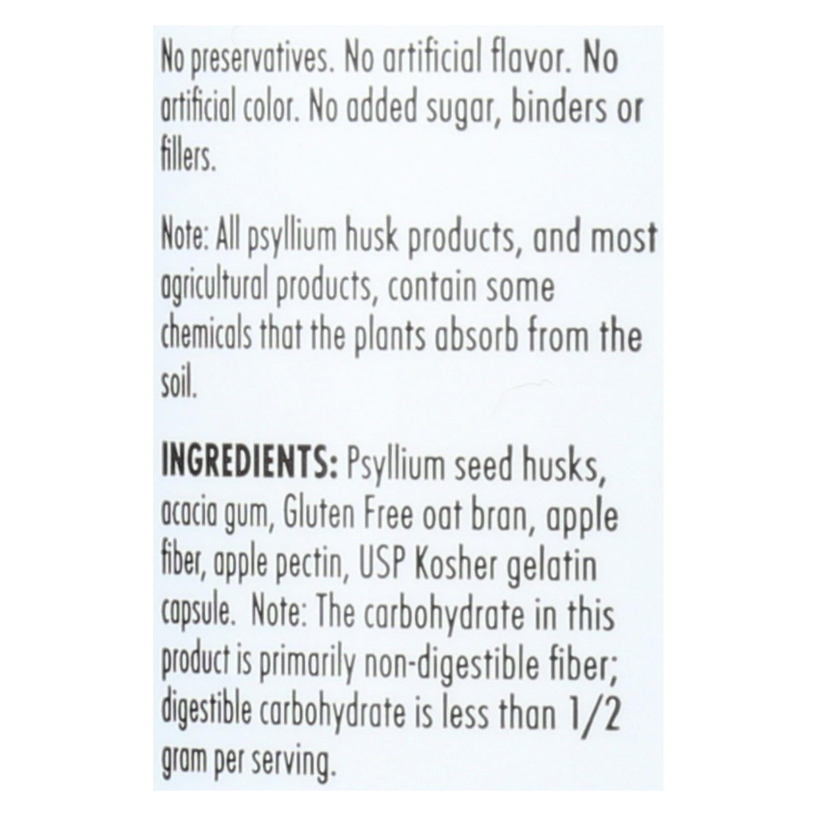 ingredients : psyllium seed husks;acacia gum;gluten free oat bran;apple fiber;apple pectin;usp kosher gelatin capsule