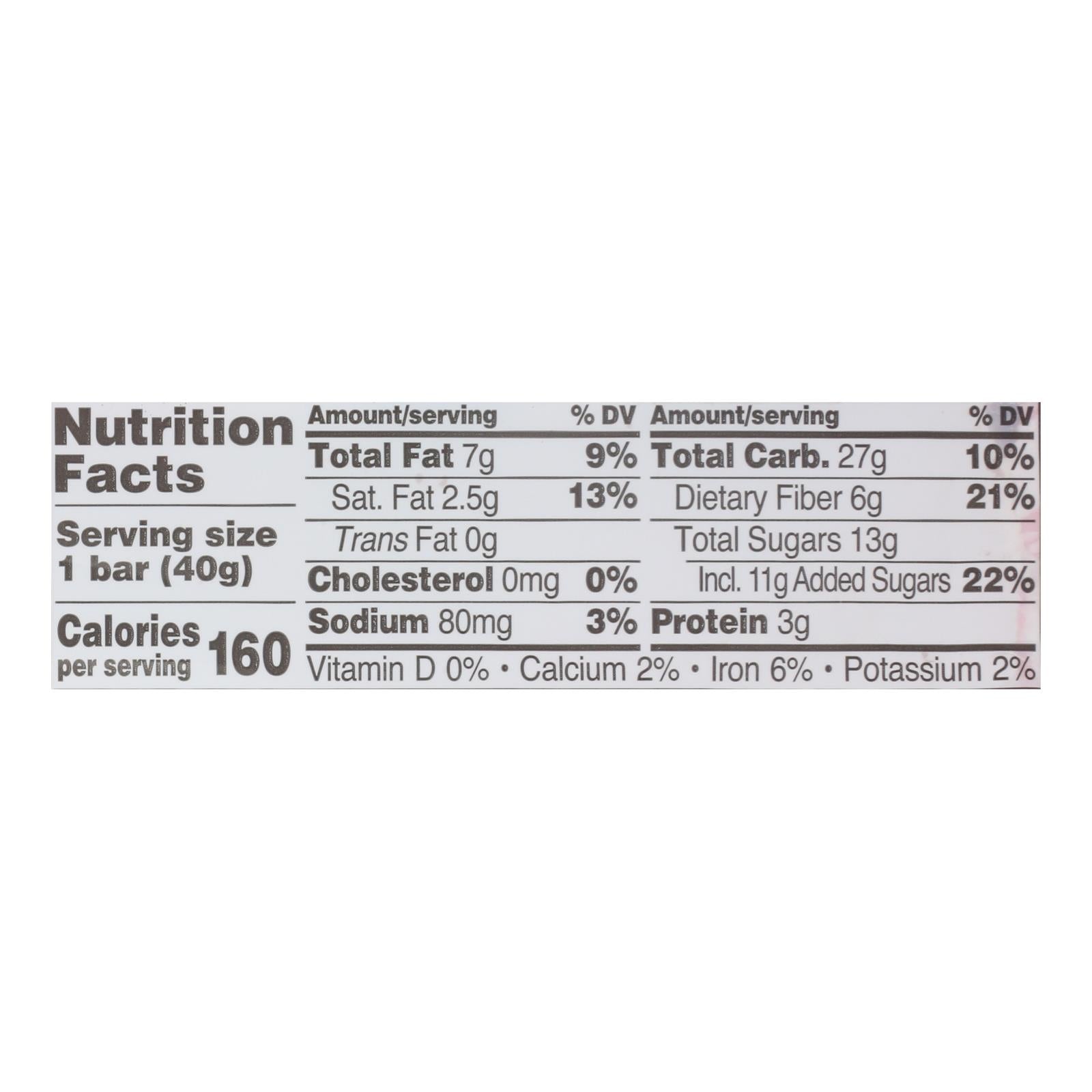 ingredients : nut;seed;and dried fruit mix;almonds;red tart cherries;cranberries;raisins;flax seeds;pumpkin seeds;chicory root fiber;honey;dark chocolate coating;cane sugar;palm kernel oil;cocoa powder;crisp rice;toasted oats;sunflower oil;raisin juice concentrate;sea salt;non-gmo sunflower lecithin;vegetable glycerine;natural flavor;citric acid