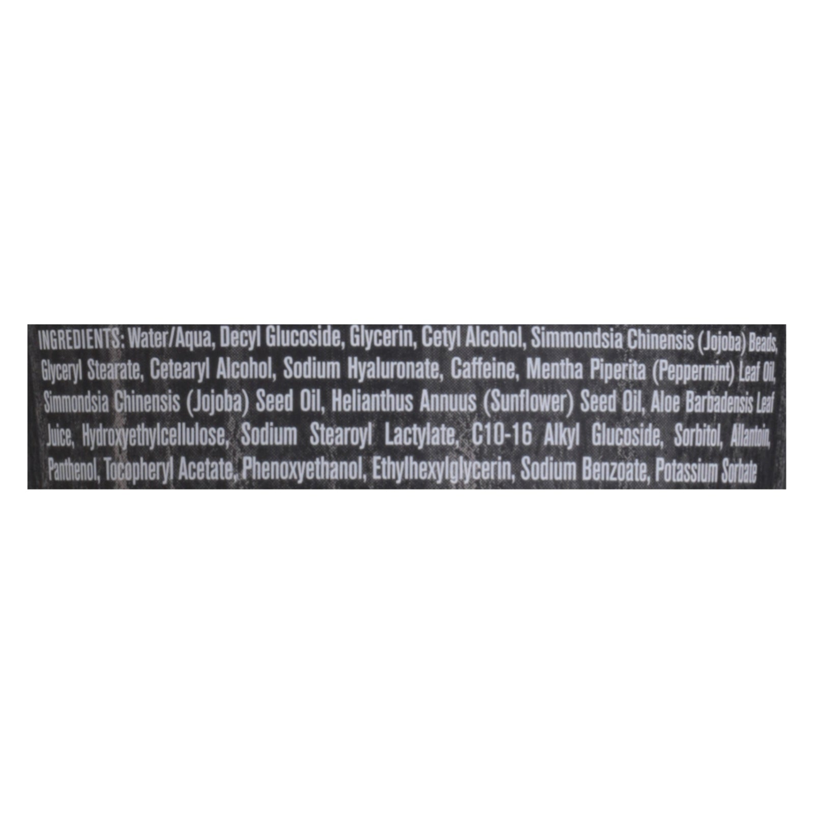 ingredients : water/aqua;decyl glucoside;glycerin;cetyl alcohol;simmondsia chinensis (jojoba) beads;glyceryl stearate;cetearyl alcohol;sodium hyaluronate;caffeine;mentha piperita (peppermint) leaf oil;simmondsia chinensis (jojoba) seed oil;helianthus annuus (sunflower) seed oil;aloe barbadensis leaf juice;hydroxyethylcellulose;sodium stearoyl lactylate;c10-16 alkyl glucoside;sorbitol;allantoin;panthenol;tocopheryl acetate;phenoxyethanol;ethylhexylglycerin;sodium benzoate;potassium sorbate