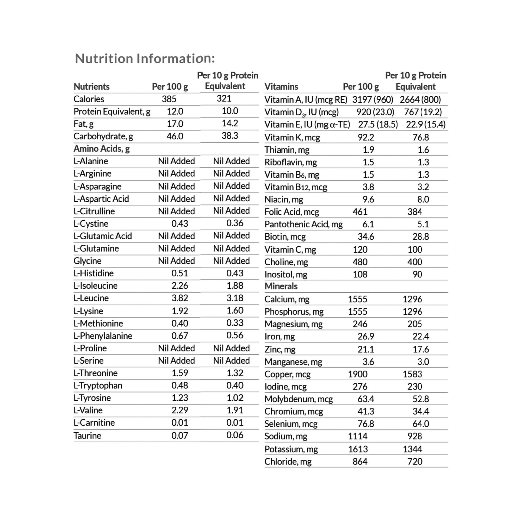 • Eight scoops (40 grams) provide 154 calories and 4.8 grams protein equivalent