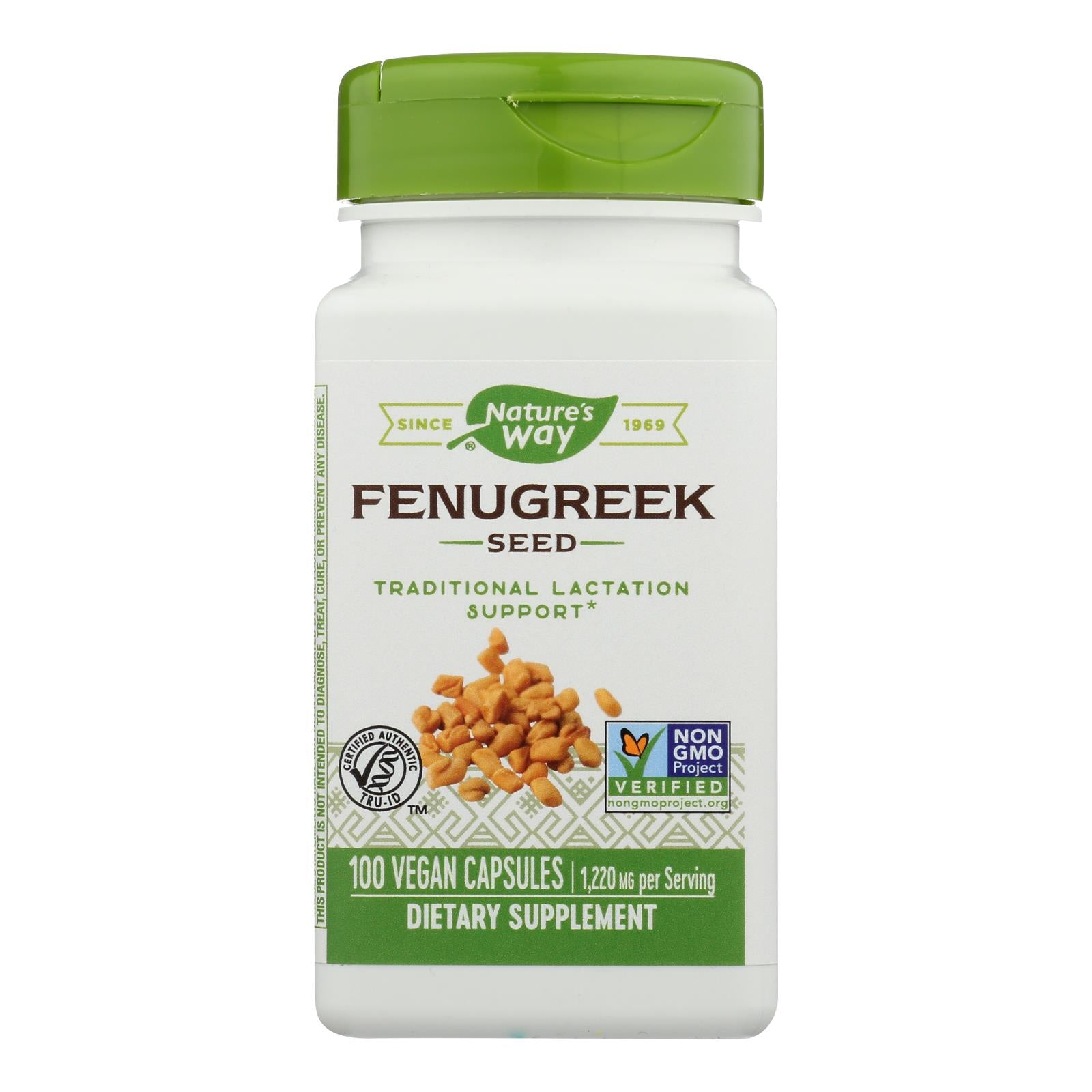 Nature's way dietary supplement fenugreek seed capsules are part of our line of premium herbal remedies. Fenugreek seeds are traditionally used to soothe an upset stomach. Our fenugreek capsules are certified non-gmo and vegetarian. They are also free of sugar, salt, yeast, as well as artificial flavors, colors and preservatives. This package contains 100 fenugreek capsules.