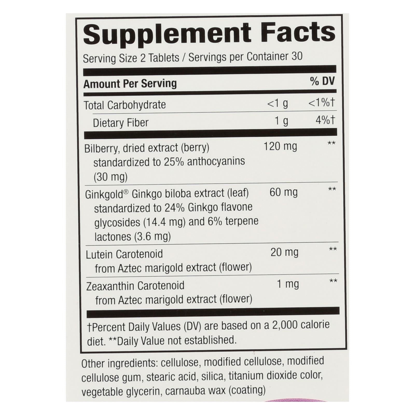 Nature's way dietary supplement advanced ginkgold extract with ginkgo, bilberry and zeaxanthin may help improve vision function. The extracts in this formula come from natural sources such as bilberry, marigold and gingko biloba. In addition, this formula contains 20 mg of lutein. This package contains 60 tablets.