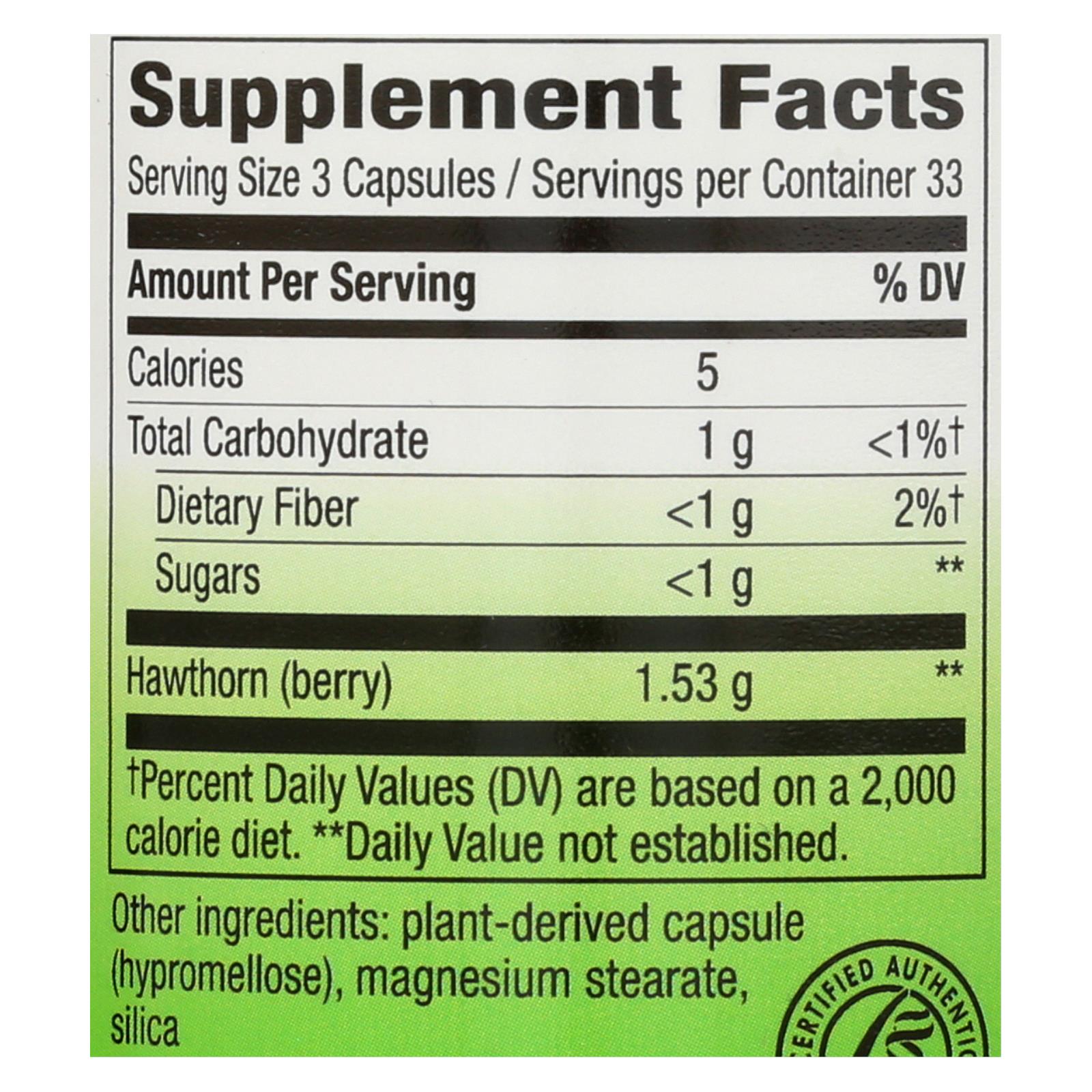 Nature's way hawthorne berries dietary supplement provides 3 g. Of hawthorne berry in each three-capsule serving. Hawthorne is used in traditional medicine to promote cardiovascular health. For best results, take three capsules three times per day with food. This gluten-free supplement contains only non-gmo ingredients and is carefully tested to ensure premium quality. Each bottle holds 100 vegetarian capsules.