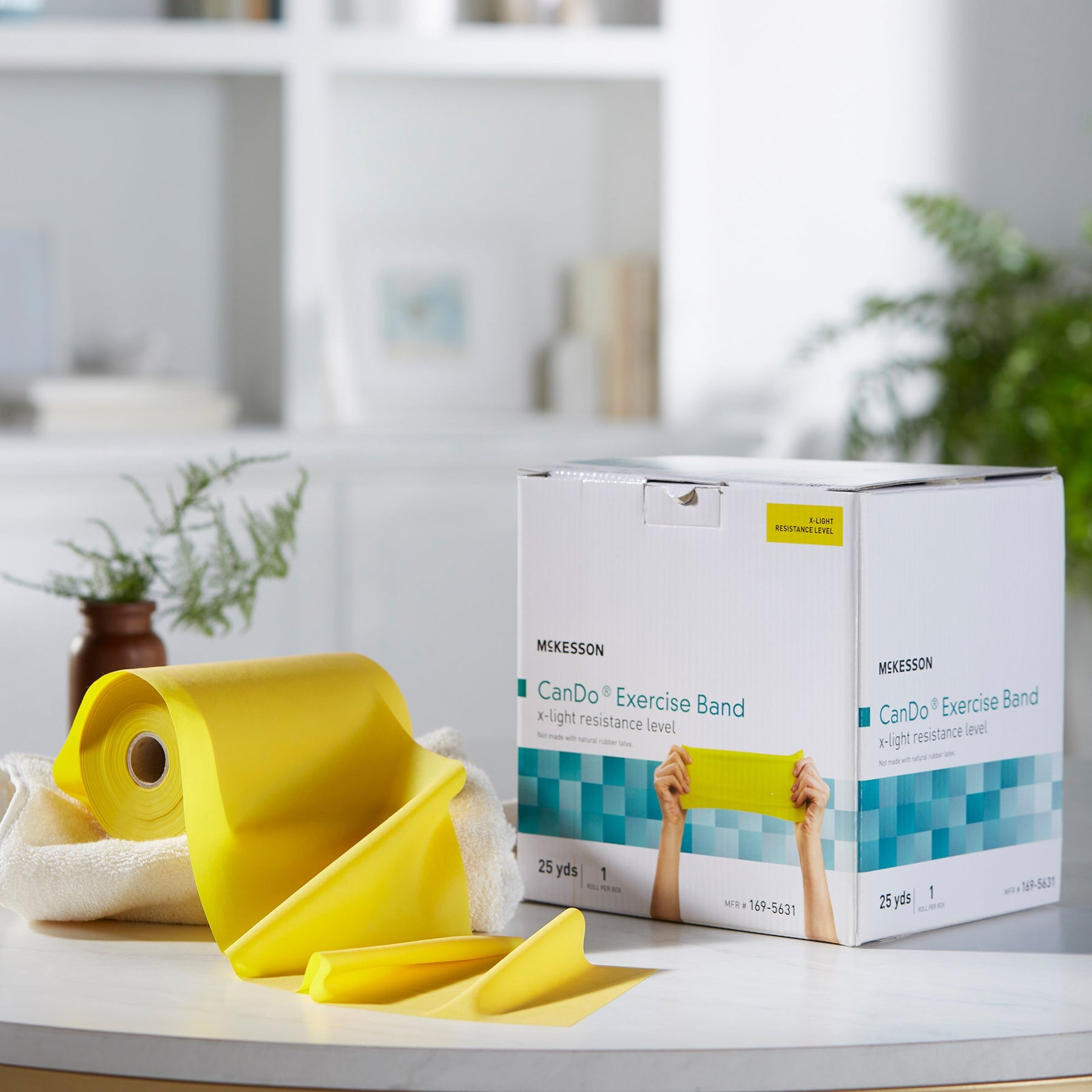 McKesson Exercise Resistance Band, Yellow, 5 Inch x 25 Yard, X-Light Resistance 1073312