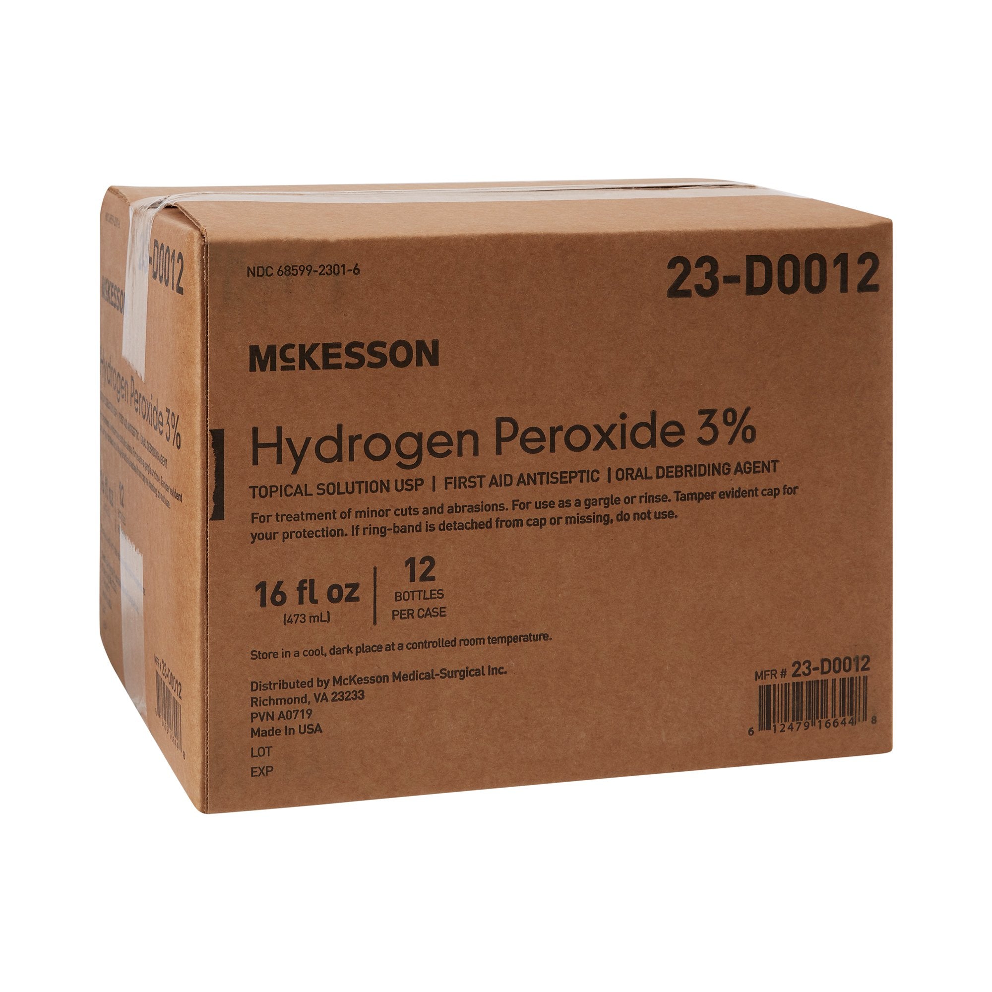 • McKesson Antiseptic Hydrogen Peroxide Topical Solution has a 3% hydrogen peroxide so is ideal for treating minor cuts and abrasions (although should not be used to treat deep wounds, animal bites, or serious burns)